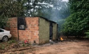 Horas depois, ela acordou assustada com o forte cheiro de fumaça. Ao sair para verificar o que estava acontecendo, se deparou com a casa completamente incendiada. O suspeito já havia fugido.