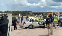 Dois ocupantes de um GM Corsa branco, placas de Sinop, morreram após colisão com uma carreta Iveco branca, há pouco, no km 608 da BR-163