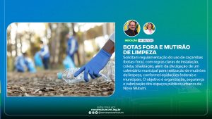 A indicação tem como meta, propor ações que melhorem a qualidade de vida da população e preservem o meio ambiente. Assim como ocorre em todas as indicações apresentadas, a execução da medida é facultativa ao Poder Executivo, que avaliará a viabilidade técnica e orçamentária para sua implementação.