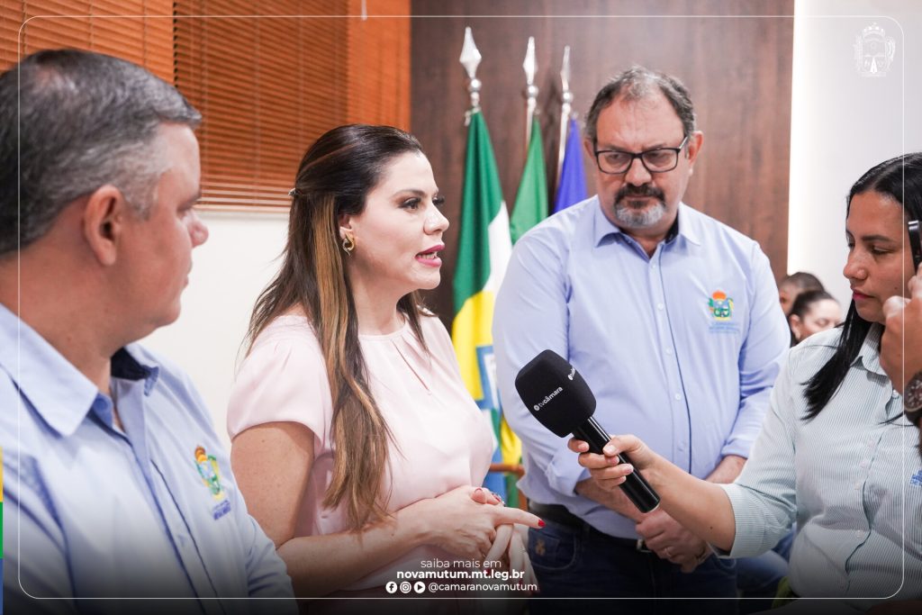 Na manhã desta segunda-feira, 4 de agosto, a Câmara Municipal de Nova Mutum recebeu a promotora de justiça da Comarca, doutora Ana Carolina, para uma reunião marcada por debates sobre o enfrentamento à violência doméstica. O diálogo ocorreu em torno do projeto de lei proposto pelo vereador Ricardo Schneider (PL), que estabelece a aplicação de multa administrativa aos agressores de mulheres no âmbito municipal.