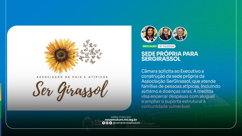 Em uma demonstração de sensibilidade e apoio às causas sociais, a Câmara de Vereadores de Nova Mutum aprovou, na última segunda-feira, 23 de março, a Indicação nº 042/2026. A proposta, que visa a construção da sede própria para a Associação de Pais e Atípicos – “Ser Girassol”, foi apresentada pela vereadora Beatriz Correa (UNIÃO BRASIL) e contou com a coautoria dos vereadores Rafael Brignoni (PL) e Lucas Badan Faria (UNIÃO BRASIL). A iniciativa, aprovada por unanimidade, sublinha o engajamento do Legislativo em promover a inclusão e o bem-estar das famílias mutuenses, reforçando o papel essencial da Câmara na construção de uma cidade mais justa e solidária.