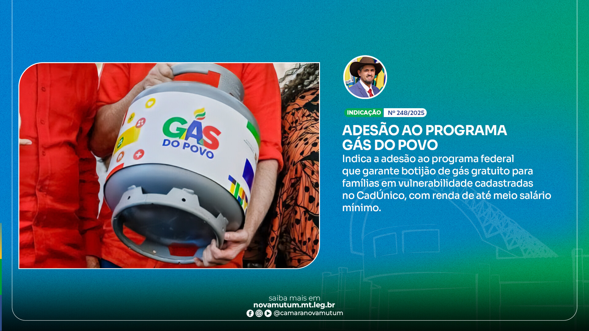 Em sessão ordinária realizada nesta quarta-feira (15), a Câmara Municipal de Nova Mutum aprovou por unanimidade uma indicação ao Poder Executivo que propõe a adesão do município ao programa federal “Gás do Povo”. A indicação de nº 248/2025 , de autoria do vereador Cristiano Bicô (Republicanos), busca viabilizar o acesso gratuito ao botijão de gás de cozinha para famílias em condição de vulnerabilidade social registradas no CadÚnico.