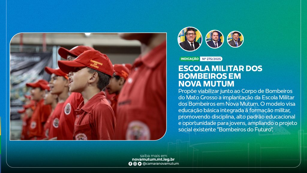 A iniciativa busca unir educação de qualidade, disciplina e valores cívicos em um modelo que já demonstra excelentes resultados em outras cidades do Estado. A proposta surge como um desdobramento do já existente projeto social “Bombeiros do Futuro”, desenvolvido em Nova Mutum, que prepara crianças e adolescentes para a vida em sociedade através de princípios de responsabilidade, respeito e compromisso.