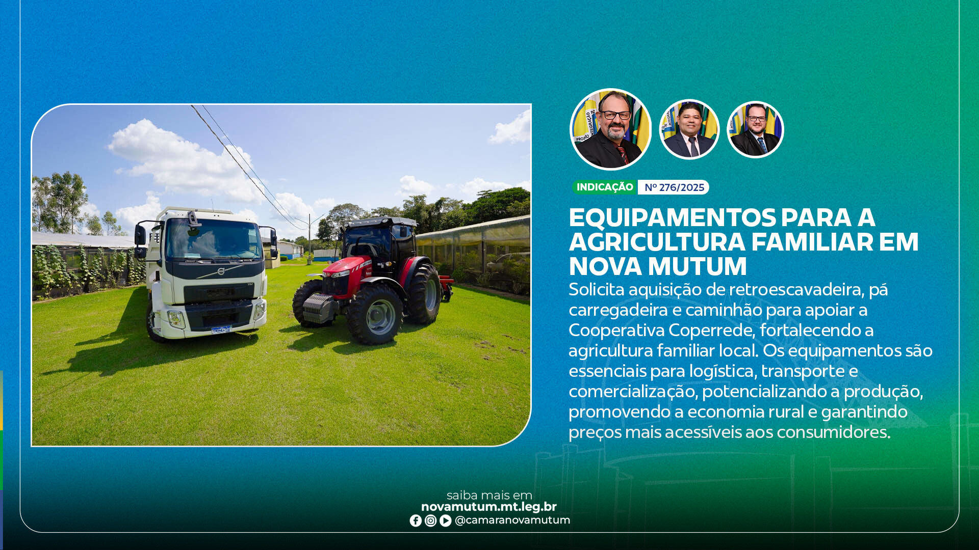 Os equipamentos solicitados também terão papel importante na logística e no transporte dos produtos agrícolas, facilitando o escoamento da produção e contribuindo para uma melhor organização das atividades da cooperativa.