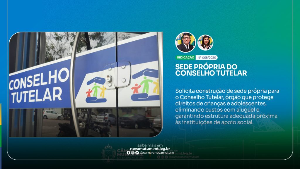 A proteção de crianças e adolescentes mutuenses ganhou destaque no plenário da Câmara Municipal na última segunda-feira, 06 de abril. Durante a 9ª sessão ordinária, foi apresentada a Indicação nº 068/2026, que solicita ao Executivo Municipal, com cópia à Secretaria Municipal de Cidadania e Assistência Social, a construção de uma sede própria para o Conselho Tutelar de Nova Mutum.