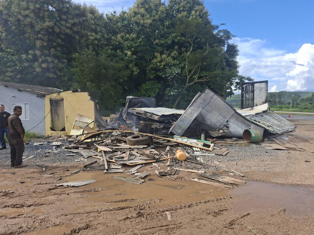 Um grave acidente foi registrado na tarde deste sábado (21) no km 561 da Rodovia Federal BR-163, no município de Nobres. Um caminhão com placas CPJ-6753, da cidade de Itirapina, saiu da pista e colidiu contra uma borracharia localizada às margens da rodovia, nas proximidades de uma mineradora, no sentido Cuiabá.