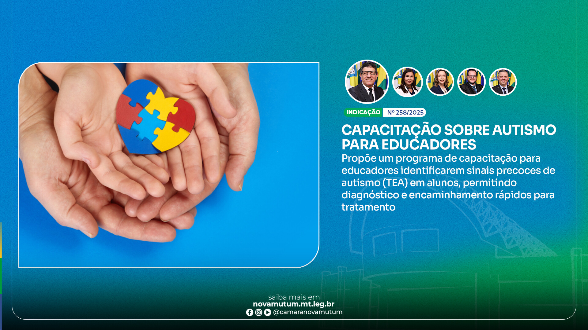 A Câmara Municipal de Nova Mutum aprovou, na última quarta-feira (15), durante a 29ª sessão ordinária, a Indicação nº 258/2025, que sugere ao Poder Executivo a criação e implementação do programa social “Autismo para Educadores”.