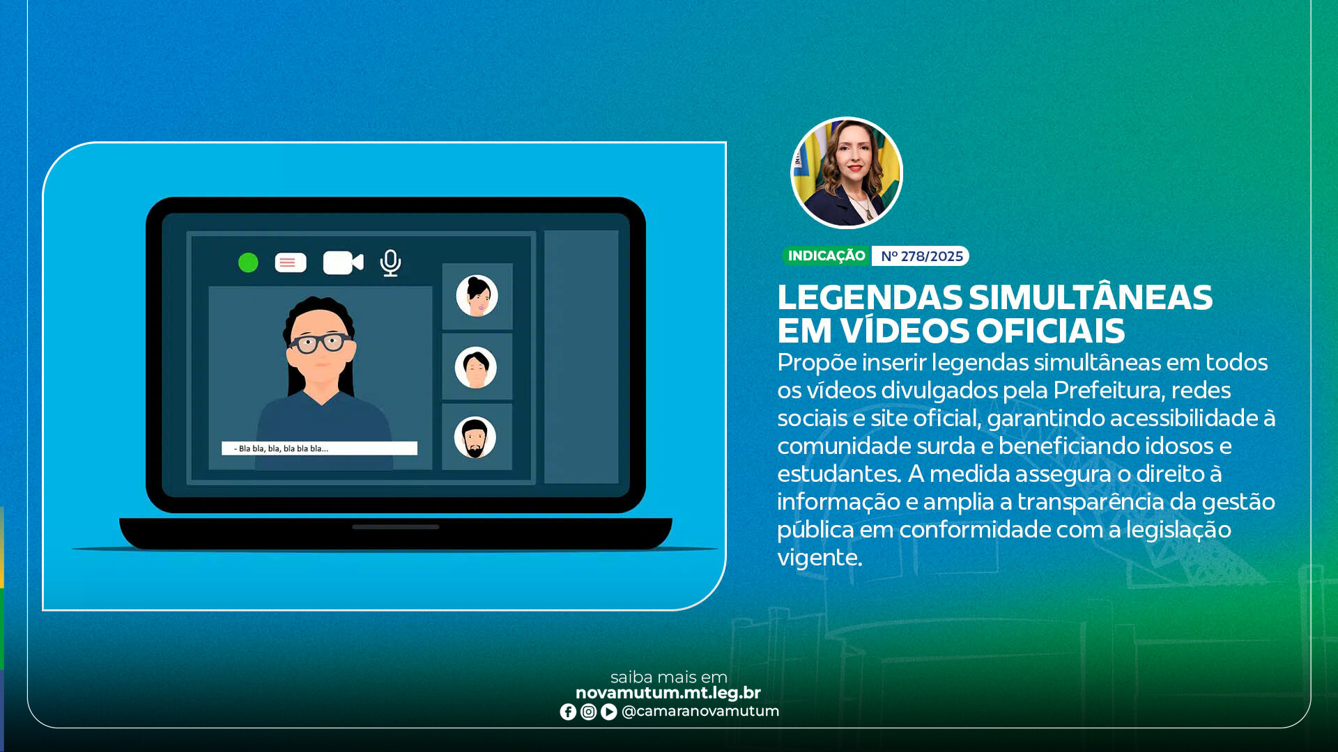 Jaiane Santos indica inserção de legendas em vídeos institucionais da Prefeitura