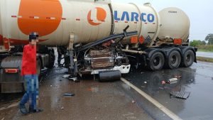 A BR-364 segue parcialmente interditada nesta sexta-feira depois de uma colisão transversal entre duas carretas-tanque carregadas com óleo diesel, no quilômetro 550, em Rosário Oeste. O acidente ocorreu por volta das duas e vinte e três da tarde.
