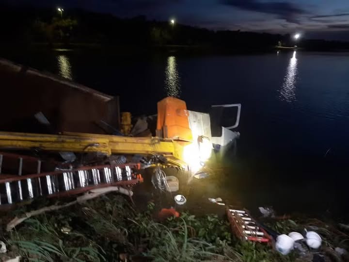 Segundo a Polícia Civil, o acidente aconteceu na BR-364, na zona rural do município. O condutor do caminhão perdeu o controle do veículo e capotou fora da pista, ultrapassando a proteção da via. O veículo parou com a cabine dentro da água, em um lago na margem da rodovia.