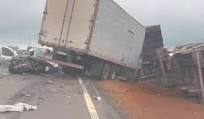 O acidente envolvendo dois automóveis, um caminhão e uma carreta graneleira ocorreu, esta manhã, no quilômetro 726 da rodovia federal, próximo à base da Polícia Rodoviária Federal entre Sorriso e Lucas do Rio Verde. Não há informações sobre vítimas até o momento. A ocorrência está em andamento.