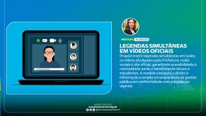 Garantir que todos tenham acesso às informações públicas é um dever do poder público. As legendas simultâneas permitem que pessoas com deficiência auditiva acompanhem as ações e campanhas da Prefeitura, fortalecendo a cidadania e a transparência”, ressaltou a vereadora Jaiane Santos.