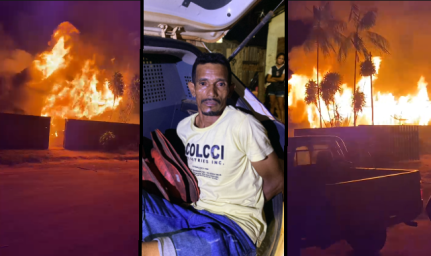 O incêndio foi controlado com o apoio de um caminhão-pipa da prefeitura, evitando que as chamas se espalhassem para imóveis vizinhos. Após diligências, a equipe policial conseguiu localizar e deter o suspeito, que foi encaminhado à delegacia para as providências cabíveis.