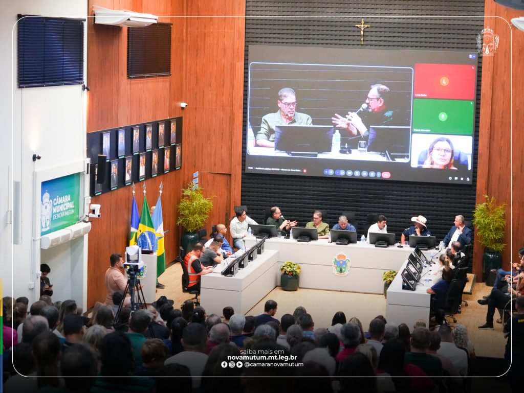 O Plenário da Câmara Municipal de Nova Mutum ficou completamente lotado na noite de quinta-feira (19), durante a Audiência Pública nº 001/2026, convocada para discutir a implantação de uma clínica de hemodiálise no município. A reunião foi presidida pelo vereador Ricardo Schneider (PL), autor da proposta, ao lado do presidente da Câmara, Lucas Badan Faria (União Brasil). Também estiveram presentes os vereadores Maciel Sousa (Republicanos), Altair Albuquerque (PP), Rafael Brignoni (PL), Beatriz Kohler (União Brasil), Carmem Casagrande (União Brasil), Jaiane Santos (PP) e Anderson Mantovan (União Brasil), reforçando a união do Legislativo em torno da pauta. O encontro reuniu ainda lideranças políticas municipais, estaduais e federais, profissionais da saúde e dezenas de pacientes e familiares.