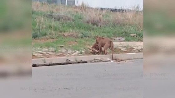 Nas imagens, é possível ver o cão ao lado do corpo do animal atacado. Segundo o relato da denunciante, o pitbull chegou a encarar uma mulher que passava de moto, obrigando-a a retornar por medo de ser atacada.