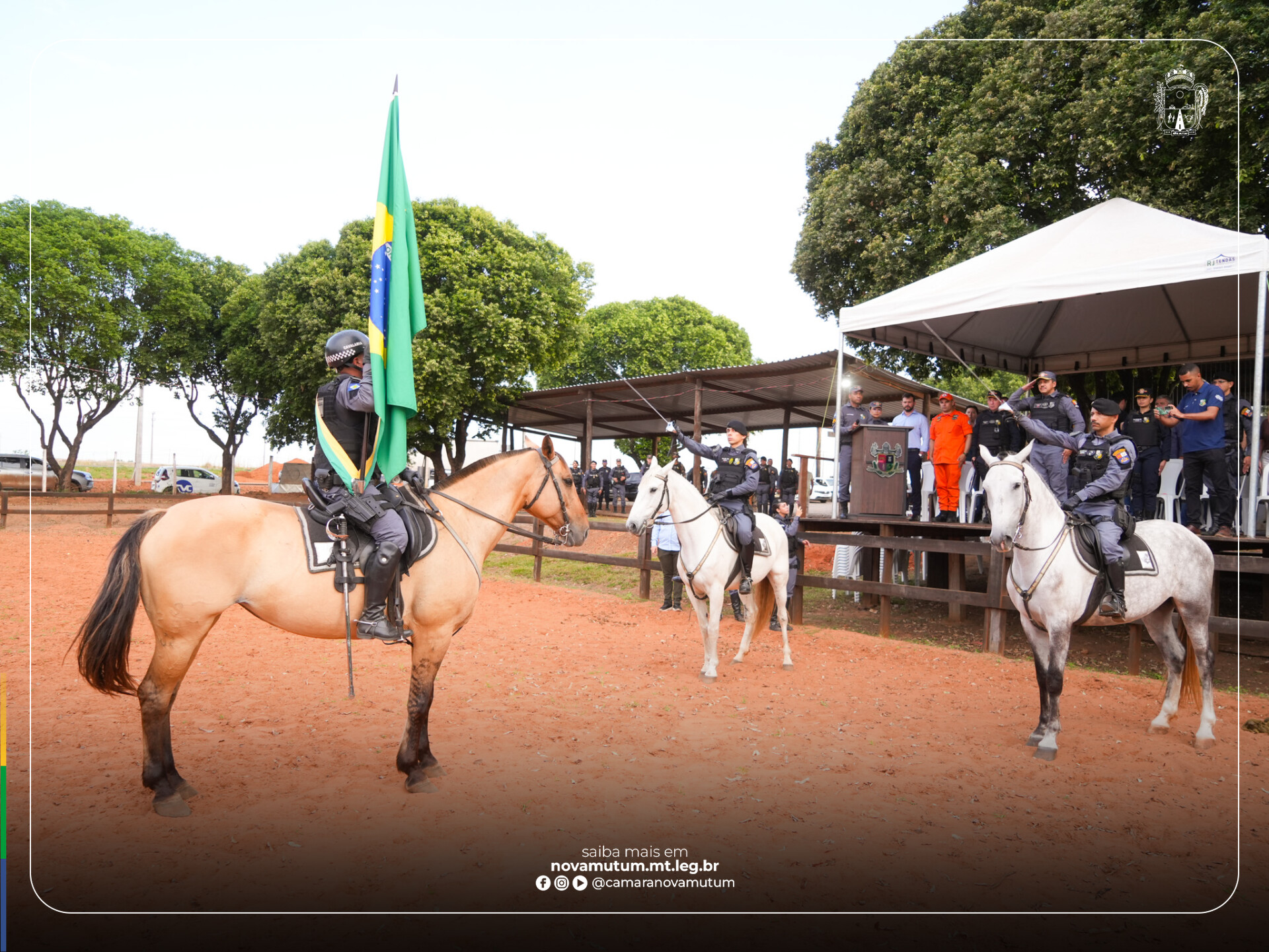A Câmara Municipal de Nova Mutum participou, na quarta-feira (22), da solenidade de passagem de comando do 1º Esquadrão Independente de Policiamento Montado, realizada na sede da unidade local da Polícia Militar. O evento reuniu diversas autoridades civis e militares e destacou a importância da integração entre instituições para o fortalecimento da segurança pública e da convivência social no município.
