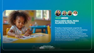 Outro ponto central da indicação é a atualização dos Projetos Político-Pedagógicos das unidades escolares, incorporando obrigatoriamente práticas de CAA, e a distribuição padronizada dos materiais em toda a rede municipal, garantindo uniformidade e eficiência. A proposta se ampara em legislações federais vigentes, entre elas a Lei Brasileira de Inclusão, a Lei Berenice Piana e a Lei nº 15.249/2025, que determina a adoção de comunicação alternativa nos serviços públicos educacionais.
